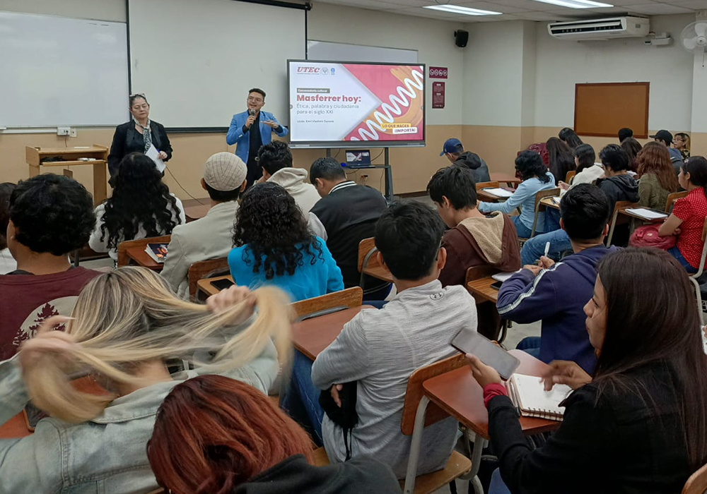 En un ambiente de análisis profundo y compromiso académico, estudiantes de diversas disciplinas se congregaron en el Aula Magna de la Universidad Tecnológica de El Salvador para participar en un conversatorio cultural centrado en el pensamiento de Alberto Masferrer, figura clave del humanismo salvadoreño.