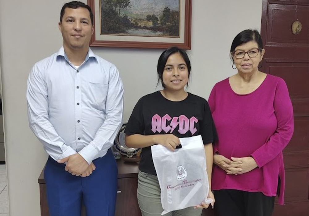 La Universidad Tecnológica de El Salvador (UTEC) realizó la despedida oficial y entrega del kit de becaria a Johanna Rebeca Viera Guzmán, estudiante de la carrera de Ingeniería Industrial de la Facultad de Informática y Ciencias Aplicadas, quien fue seleccionada para participar en un programa de intercambio académico internacional durante un semestre en la Universidad de Guadalajara, México.