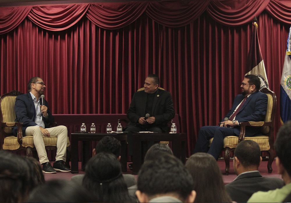 Durante el foro participaron representantes de comunidades indígenas, entre ellos Tata Sebastián, protector de las semillas nativas de El Salvador, y estudiantes como Natalie Bolaños, de la asignatura Expresión Oral y Escrita del Español, quienes compartieron presentaciones artísticas, musicales y de modelaje.