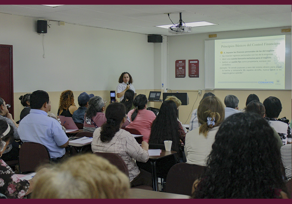 La Vicerrectoría de Investigación y Proyección Social de la Universidad Tecnológica de El Salvador (UTEC), a través de su Dirección de Proyección Social y en alianza con la organización Pro Mujer y la Comisión Nacional de la Micro y Pequeña Empresa (CONAMYPE), desarrolló el taller titulado “Educación financiera y acceso al financiamiento para emprendedores”, dirigido a mujeres beneficiarias del fondo de capital semilla Pro Mujer.